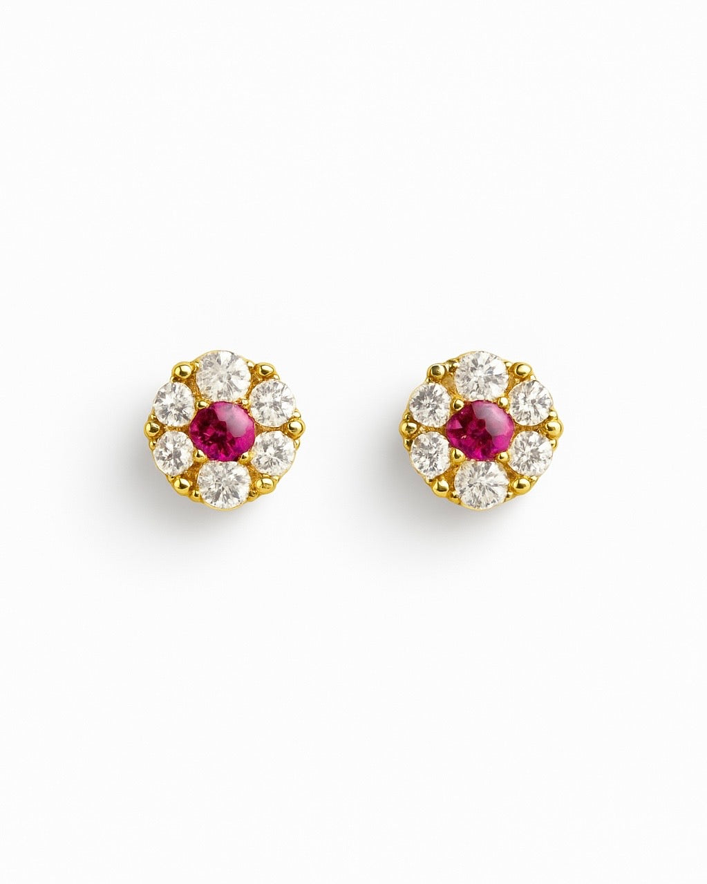 - Brinco com zircônias cravejadas em formato de flor e haste infantil.